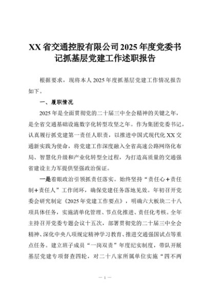 【七哥公文】2025年:XX省交通控股有限公司2025年度党委书记抓基层党建工作述职报告+更多免费公文+VX:QiGeGongWen2024