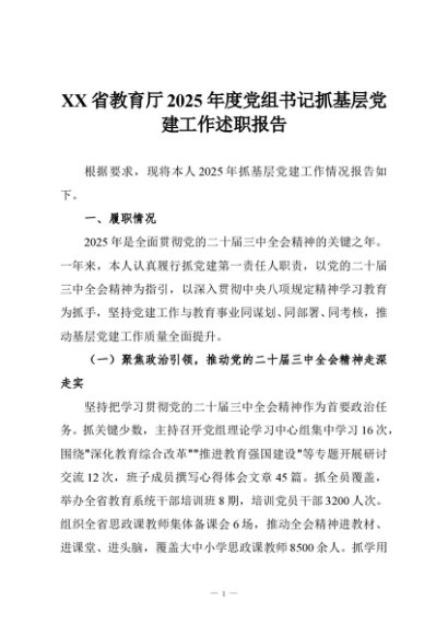 【七哥公文】2025年:XX省教育厅2025年度党组书记抓基层党建工作述职报告+更多免费公文+VX:QiGeGongWen2024