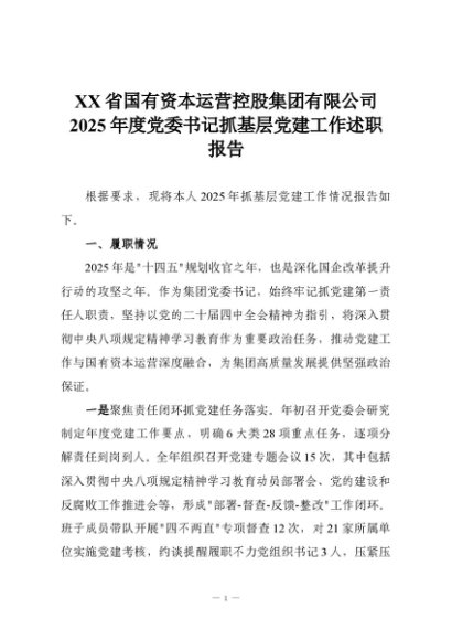【七哥公文】2025年:XX省国有资本运营控股集团有限公司2025年度党委书记抓基层党建工作述职报告+更多免费公文+VX:QiGeGongWen2024