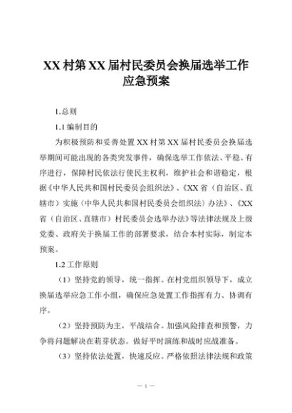 / 【七哥公文】2025年:XX村第XX届村民委员会换届选举工作应急预案+更多免费公文+VX:QiGeGongWen2024