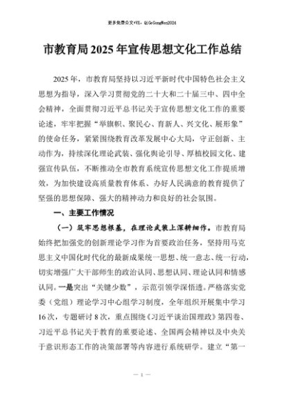 / 【七哥公文】2025年:市教育局2025年宣传思想文化工作总结+更多免费公文+VX:QiGeGongWen2024