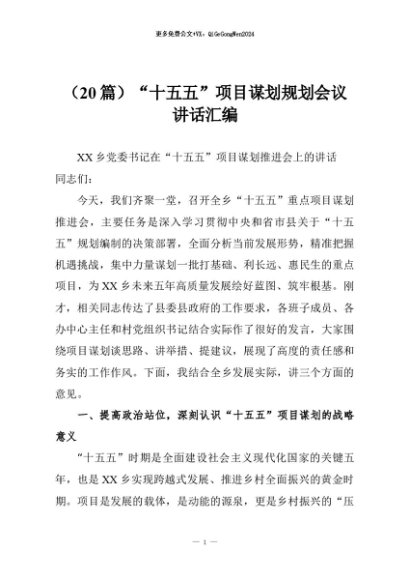 / 【七哥公文】2025年:(20篇)“十五五”项目谋划规划会议讲话汇编+更多免费公文+VX:QiGeGongWen2024