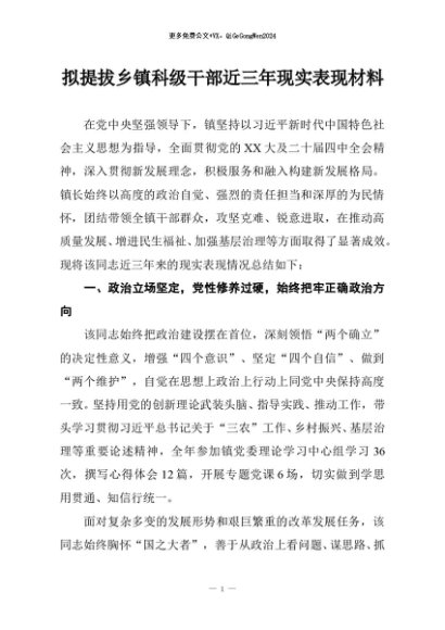 / 【七哥公文】2025年:拟提拔乡镇科级干部近三年现实表现材料+更多免费公文+VX:QiGeGongWen2024