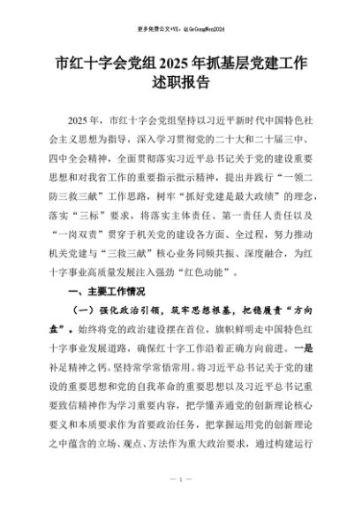 / 【七哥公文】2025年:市红十字会党组2025年抓基层党建工作述职报告+更多免费公文+VX:QiGeGongWen2024