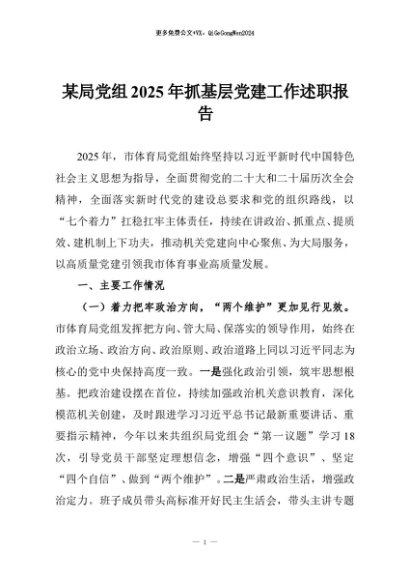 / 【七哥公文】2025年:某局党组2025年抓基层党建工作述职报告+更多免费公文+VX:QiGeGongWen2024