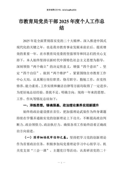 / 【七哥公文】2025年:市教育局党员干部2025年度个人工作总结+更多免费公文+VX:QiGeGongWen2024