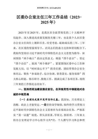 【七哥公文】2025年:区委办公室主任三年工作总结(2023-2025年)+更多免费公文+VX:QiGeGongWen2024