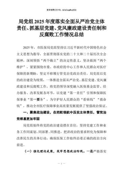 【七哥公文】2025年:局党组2025年度落实全面从严治党主体责任、抓基层党建、党风廉政建设责任制和反腐败工作情况总结+更多免费公文+VX:QiGeGongWen2024