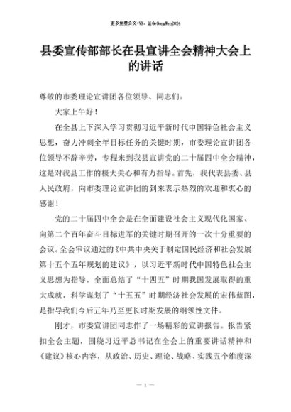 / 【七哥公文】2025年:县委宣传部部长在县宣讲全会精神大会上的讲话+更多免费公文+VX:QiGeGongWen2024