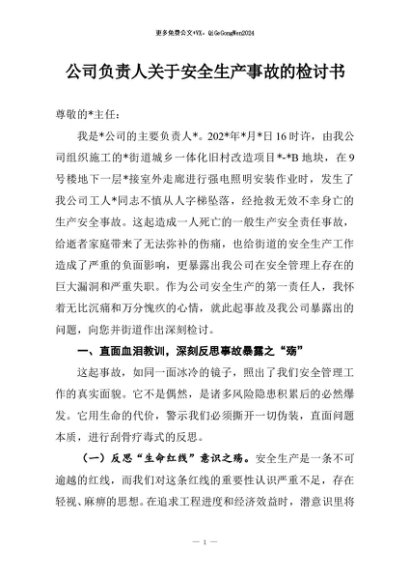 / 【七哥公文】2025年:公司负责人关于安全生产事故的检讨书+更多免费公文+VX:QiGeGongWen2024