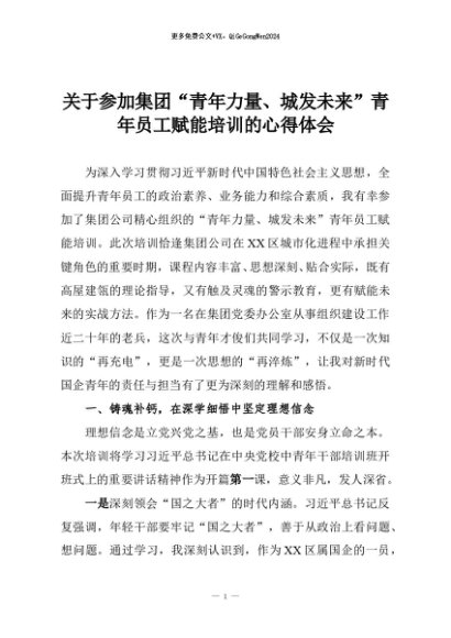 【七哥公文】2025年:关于参加集团“青年力量、城发未来”青年员工赋能培训的心得体会+更多免费公文+VX:QiGeGongWen2024