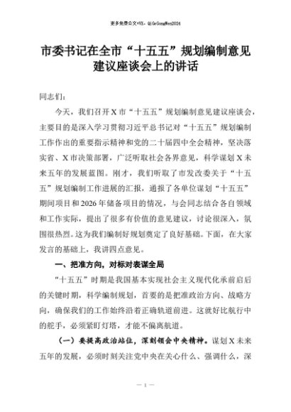 【七哥公文】2025年:市委书记在全市“十五五”规划编制意见建议座谈会上的讲话+更多免费公文+VX:QiGeGongWen2024