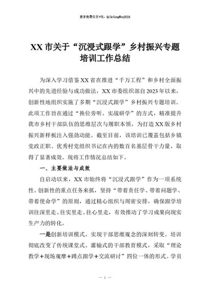 / 【七哥公文】2025年:XX市关于“沉浸式跟学”乡村振兴专题培训工作总结+更多免费公文+VX:QiGeGongWen2024