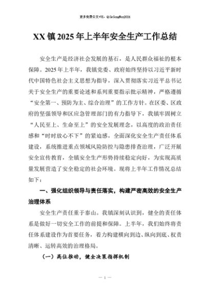 / 【七哥公文】2025年:XX镇2025年上半年安全生产工作总结+更多免费公文+VX:QiGeGongWen2024