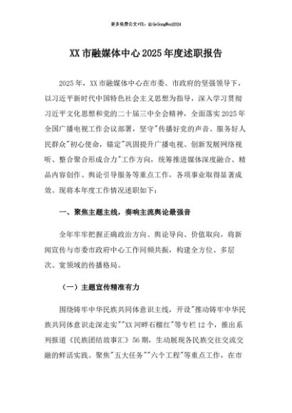 / 【七哥公文】2025年:XX市融媒体中心2025年度述职报告+更多免费公文+VX:QiGeGongWen2024
