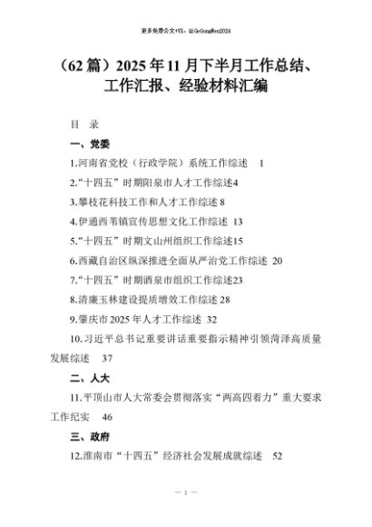 【七哥公文】2025年:(62篇)2025年11月下半月工作总结、工作汇报、经验材料汇编+更多免费公文+VX:QiGeGongWen2024