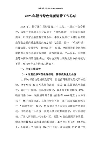 / 【七哥公文】2025年:2025年银行绿色低碳运营工作总结+更多免费公文+VX:QiGeGongWen2024