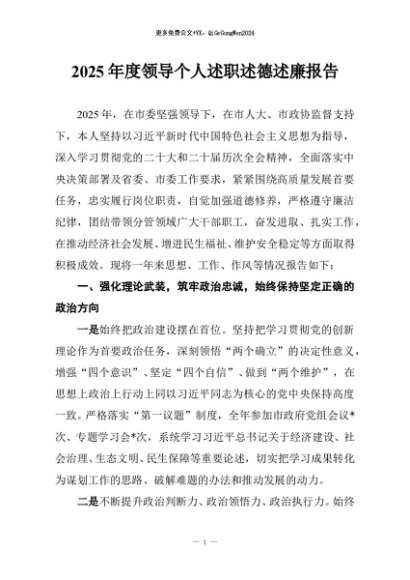 / 【七哥公文】2025年:2025年度领导个人述职述德述廉报告+更多免费公文+VX:QiGeGongWen2024