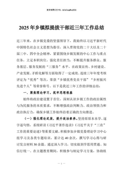 / 【七哥公文】2025年:2025年乡镇拟提拔干部近三年工作总结+更多免费公文+VX:QiGeGongWen2024
