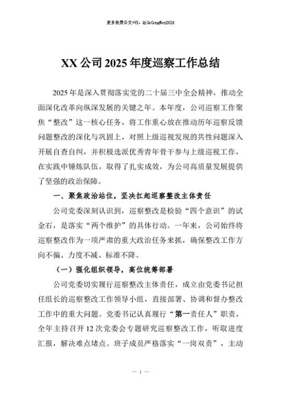 / 【七哥公文】2025年:XX公司2025年度巡察工作总结+更多免费公文+VX:QiGeGongWen2024