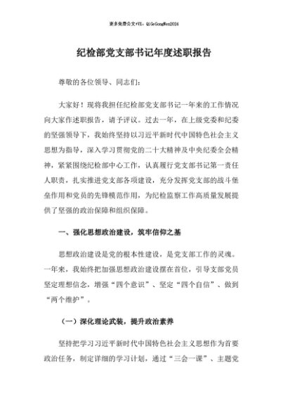 / 【七哥公文】2025年:纪检部党支部书记年度述职报告+更多免费公文+VX:QiGeGongWen2024