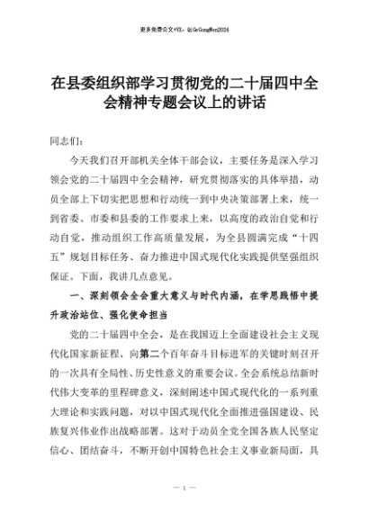 【七哥公文】2025年:在县委组织部学习贯彻党的二十届四中全会精神专题会议上的讲话+更多免费公文+VX:QiGeGongWen2024
