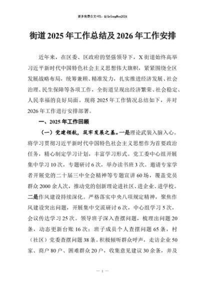 / 【七哥公文】2025年:街道2025年工作总结及2026年工作安排+更多免费公文+VX:QiGeGongWen2024