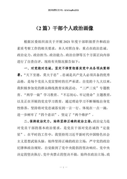 【七哥公文】2025年:(2篇)干部个人政治画像+更多免费公文+VX:QiGeGongWen2024