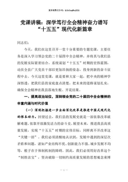【七哥公文】2025年:党课讲稿:深学笃行全会精神奋力谱写“十五五”现代化新篇章+更多免费公文+VX:QiGeGongWen2024