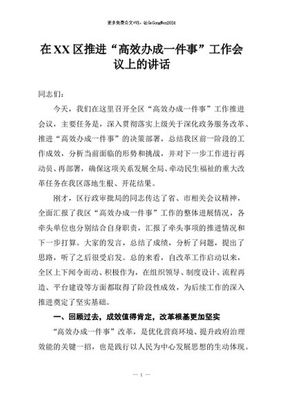 / 【七哥公文】2025年:在XX区推进“高效办成一件事”工作会议上的讲话+更多免费公文+VX:QiGeGongWen2024