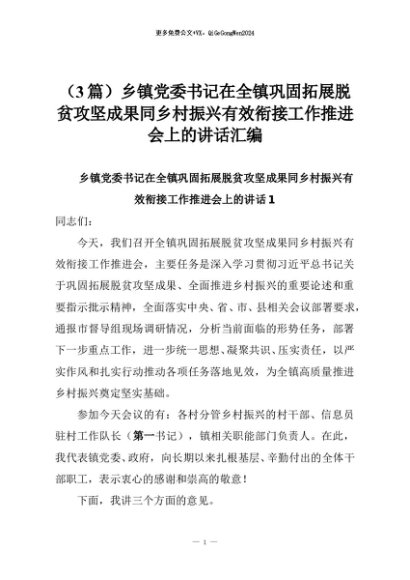 【七哥公文】2025年:(3篇)乡镇党委书记在全镇巩固拓展脱贫攻坚成果同乡村振兴有效衔接工作推进会上的讲话汇编+更多免费公文+VX:QiGeGongWen2024