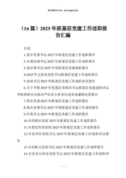 / 【七哥公文】2025年:(16篇)2025年抓基层党建工作述职报告汇编+更多免费公文+VX:QiGeGongWen2024