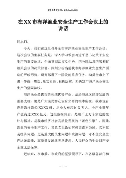 / 【七哥公文】2025年:在XX市海洋渔业安全生产工作会议上的讲话+更多免费公文+VX:QiGeGongWen2024