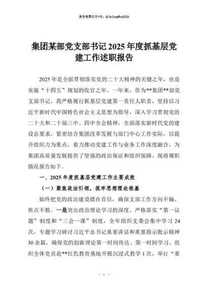【七哥公文】2025年:集团某部党支部书记2025年度抓基层党建工作述职报告+更多免费公文+VX:QiGeGongWen2024