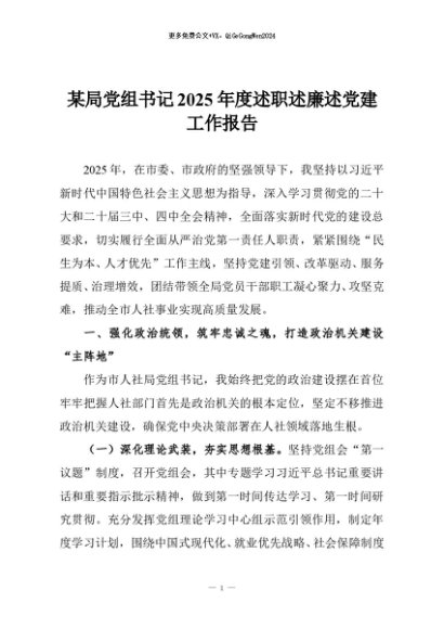 / 【七哥公文】2025年:某局党组书记2025年度述职述廉述党建工作报告+更多免费公文+VX:QiGeGongWen2024
