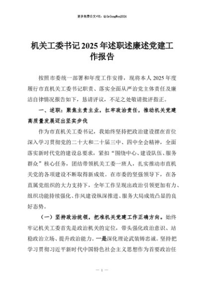 / 【七哥公文】2025年:机关工委书记2025年述职述廉述党建工作报告+更多免费公文+VX:QiGeGongWen2024