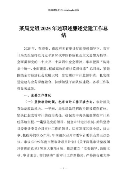/ 【七哥公文】2025年:某局党组2025年述职述廉述党建工作总结+更多免费公文+VX:QiGeGongWen2024