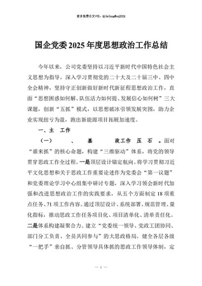 / 【七哥公文】2025年:国企党委2025年度思想政治工作总结+更多免费公文+VX:QiGeGongWen2024