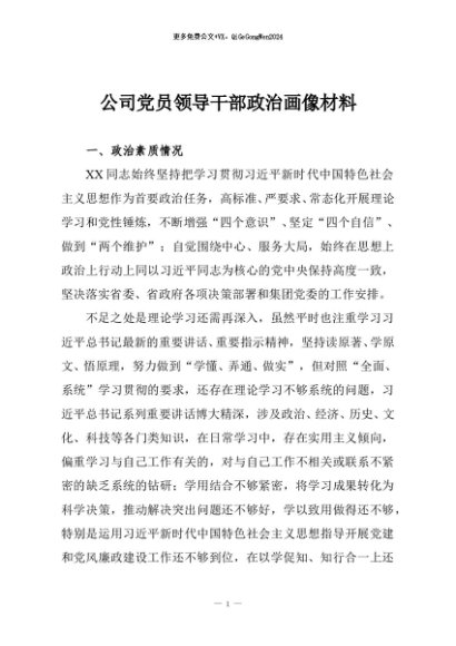 / 【七哥公文】2025年:公司党员领导干部政治画像材料+更多免费公文+VX:QiGeGongWen2024