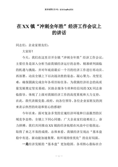/ 【七哥公文】2025年:在XX镇“冲刺全年胜”经济工作会议上的讲话+更多免费公文+VX:QiGeGongWen2024