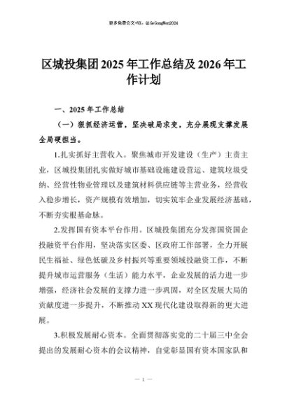 / 【七哥公文】2025年:区城投集团2025年工作总结及2026年工作计划+更多免费公文+VX:QiGeGongWen2024