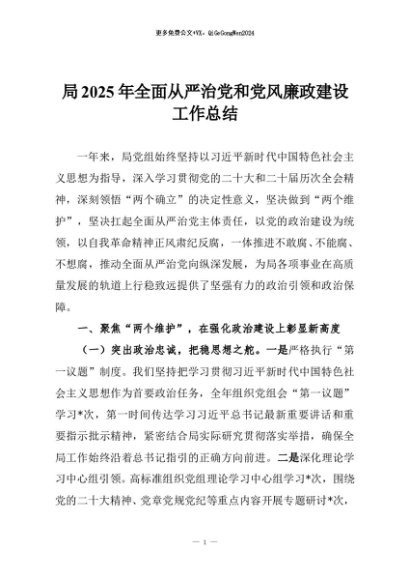 / 【七哥公文】2025年:局2025年全面从严治党和党风廉政建设工作总结+更多免费公文+VX:QiGeGongWen2024