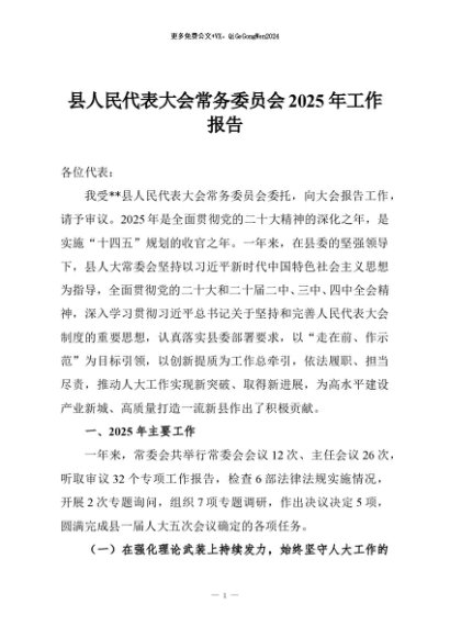 / 【七哥公文】2025年:县人民代表大会常务委员会2025年工作报告+更多免费公文+VX:QiGeGongWen2024
