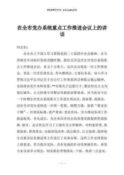 / 【七哥公文】2025年:在全市党办系统重点工作推进会议上的讲话+更多免费公文+VX:QiGeGongWen2024