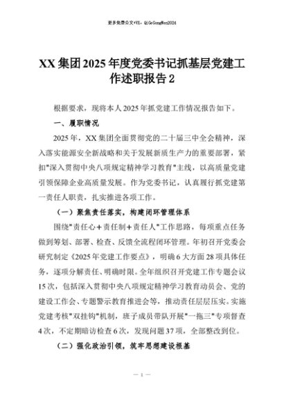 【七哥公文】2025年:XX集团2025年度党委书记抓基层党建工作述职报告2+更多免费公文+VX:QiGeGongWen2024