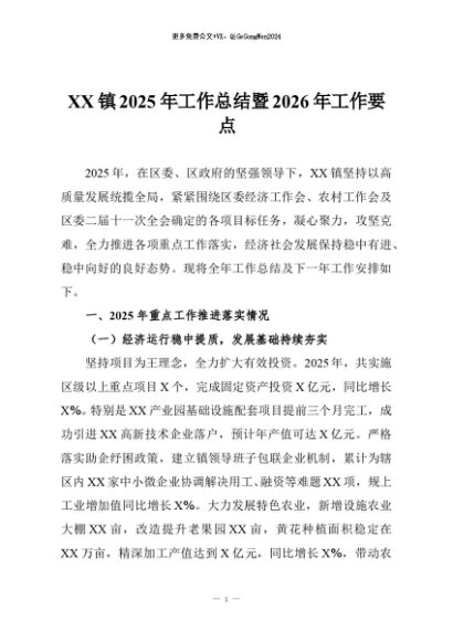 【七哥公文】2025年:XX镇2025年工作总结暨2026年工作要点+更多免费公文+VX:QiGeGongWen2024