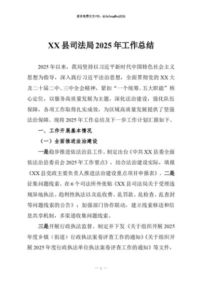 / 【七哥公文】2025年:XX县司法局2025年工作总结+更多免费公文+VX:QiGeGongWen2024