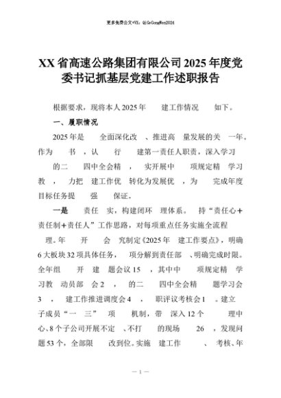 【七哥公文】2025年:XX省高速公路集团有限公司2025年度党委书记抓基层党建工作述职报告+更多免费公文+VX:QiGeGongWen2024