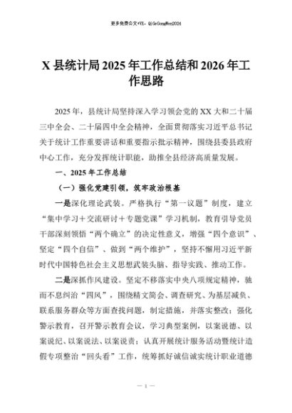 / 【七哥公文】2025年:X县统计局2025年工作总结和2026年工作思路+更多免费公文+VX:QiGeGongWen2024