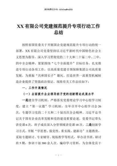 / 【七哥公文】2025年:XX有限公司党建规范提升专项行动工作总结+更多免费公文+VX:QiGeGongWen2024